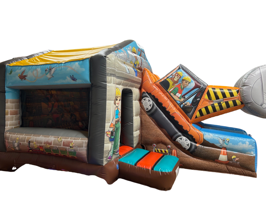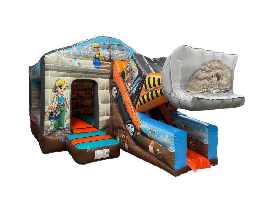 As a bouncy castle manufacturer of the Bounce & Slide 12 x 18 3D Digger in UK, Inflatable World delivers a standout inflatable with bold construction artwork and a true-to-life 3D digger. Designed for hire companies and event organisers, this unit combines eye-catching design with commercial-grade build quality. It’s perfect for children who love diggers and construction themes.