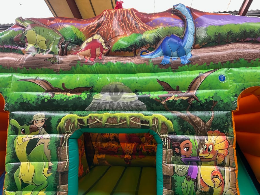 Bring prehistoric fun to your events with the Dino Cabin 18 x 12 - Twin Slide. This eye-catching dinosaur bouncy castle features stunning 3D artwork that makes it a show-stopping centrepiece for birthday parties, school fetes, and community events. Built with commercial-grade materials and attention to detail, it’s designed to perform day after day for hire companies and event organisers across the UK.