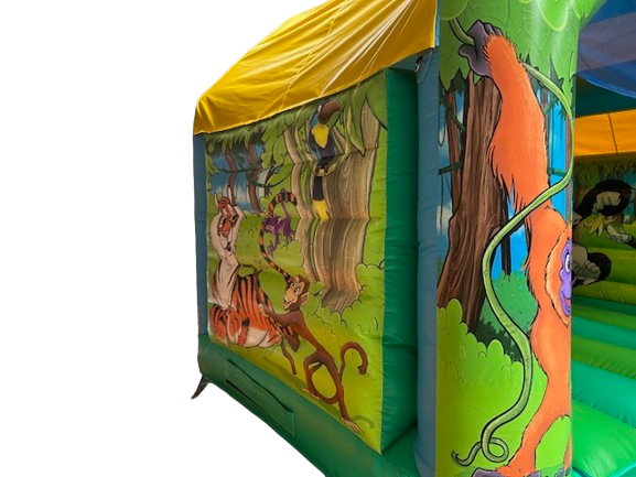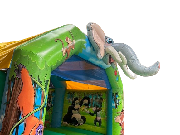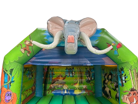 Introducing the A-Frame 15 x 15 3D Elephant Head Bouncy Castle, designed and manufactured by Inflatable World, the best 3D bouncy castle manufacturer in the UK. This bouncy castle features a stunning 3D Elephant Head design with a captivating Jungle theme, making it a standout choice for bouncy castle hire companies and event companies.