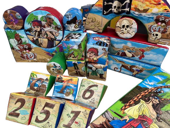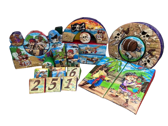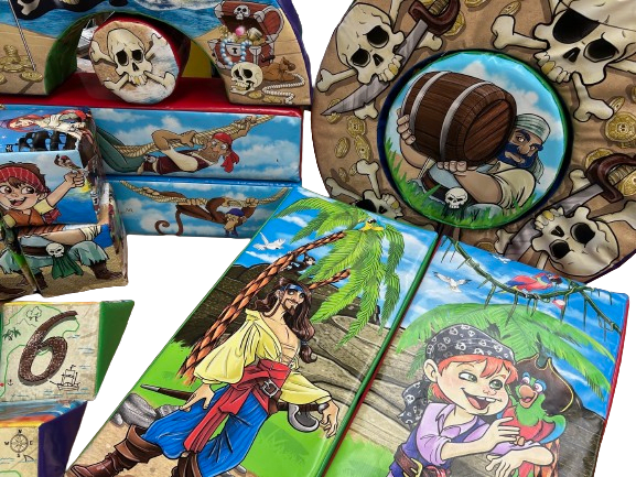 Enhance your soft play experience with the 23 Piece Soft Play Set - Pirate, proudly manufactured by Inflatable World in Nottingham. This delightful set features lovely hand-drawn artwork and provides endless entertainment for children. Perfect for hire companies looking to stand out, the pirate-themed set comes with a 2-year warranty for your peace of mind.